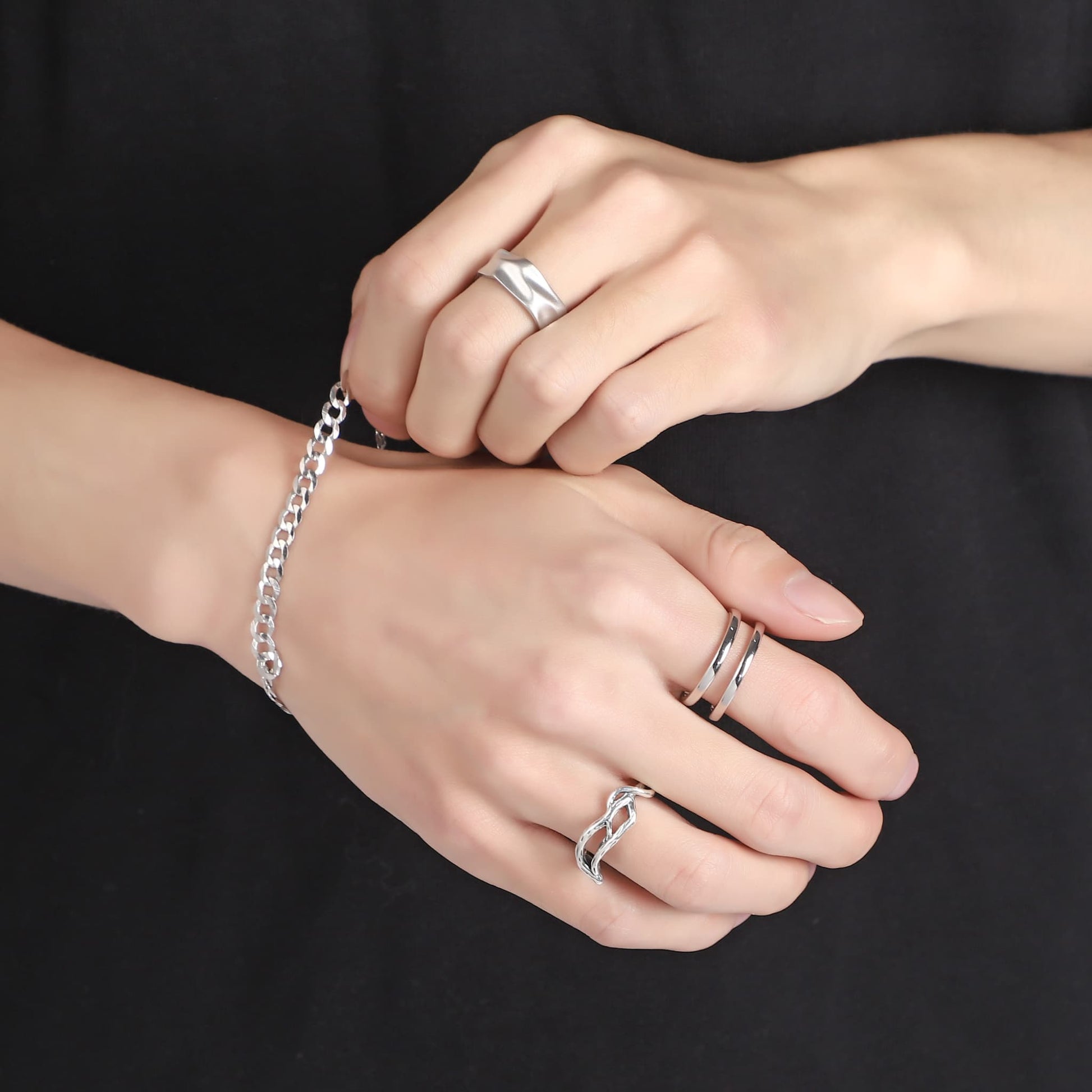 純銀92.5%を使用した高品質なシルバー素材。錆びにくく、変色しにくいため、長く美しい輝きをお楽しみいただけます。金属アレルギーに配慮した素材のため、敏感肌の方にも比較的安心してご使用いただけます。